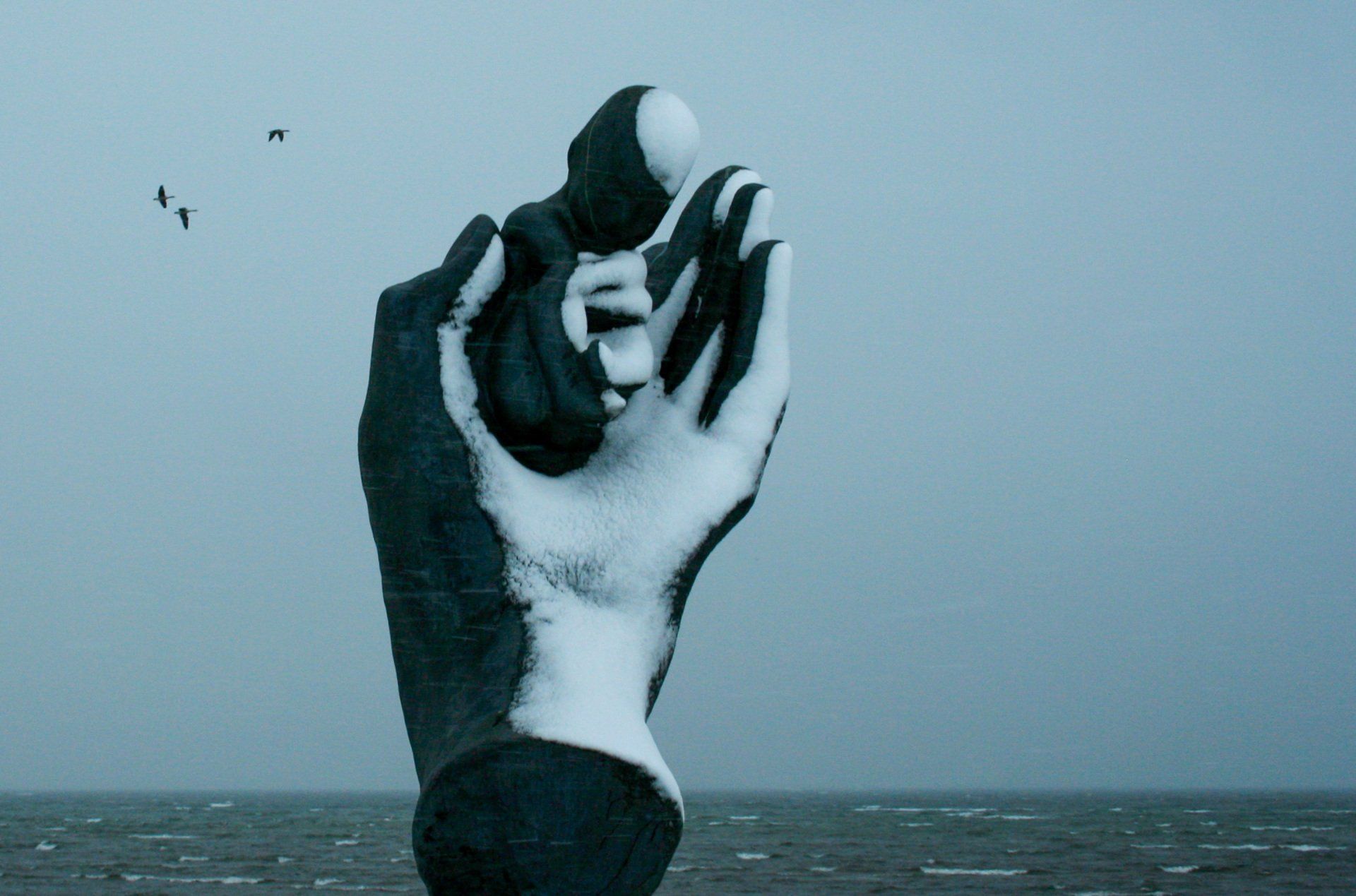 The artist Gudmar Olovson about his statue: ”The hand of a woman holding and protecting the tiny child shows respect for life and rebirth.” Photo: Bertil Lenntorp