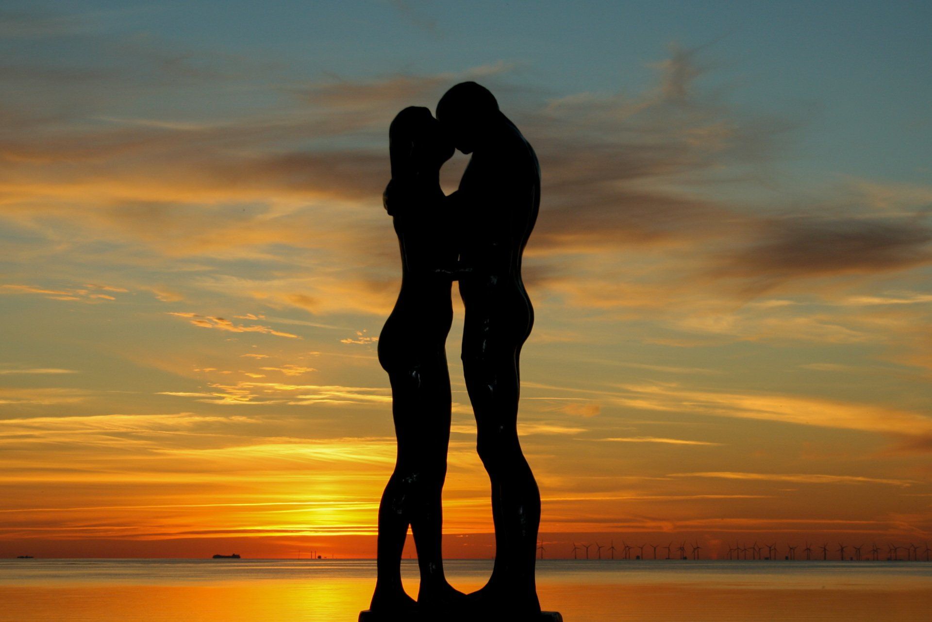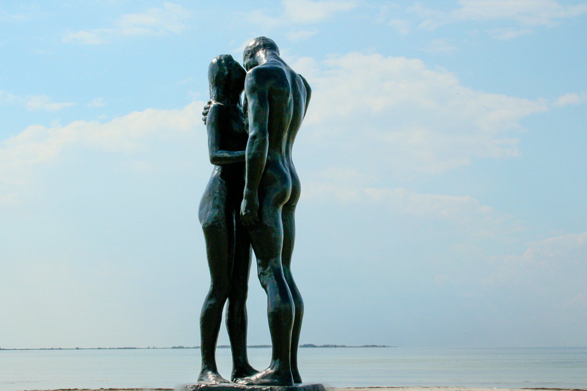 The artist Gudmar Olovson about his statue: ”A man and a woman, like two pinetrees, are growing close to oneanother in a strong relationship.” Photo: Bertil Lenntorp